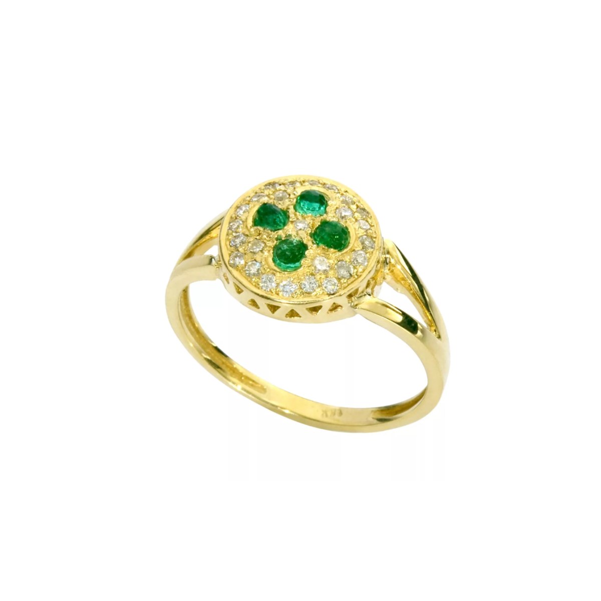 טבעת זהב 14K משובצת אבן אמרלד ויהלומים 0.65 קראט