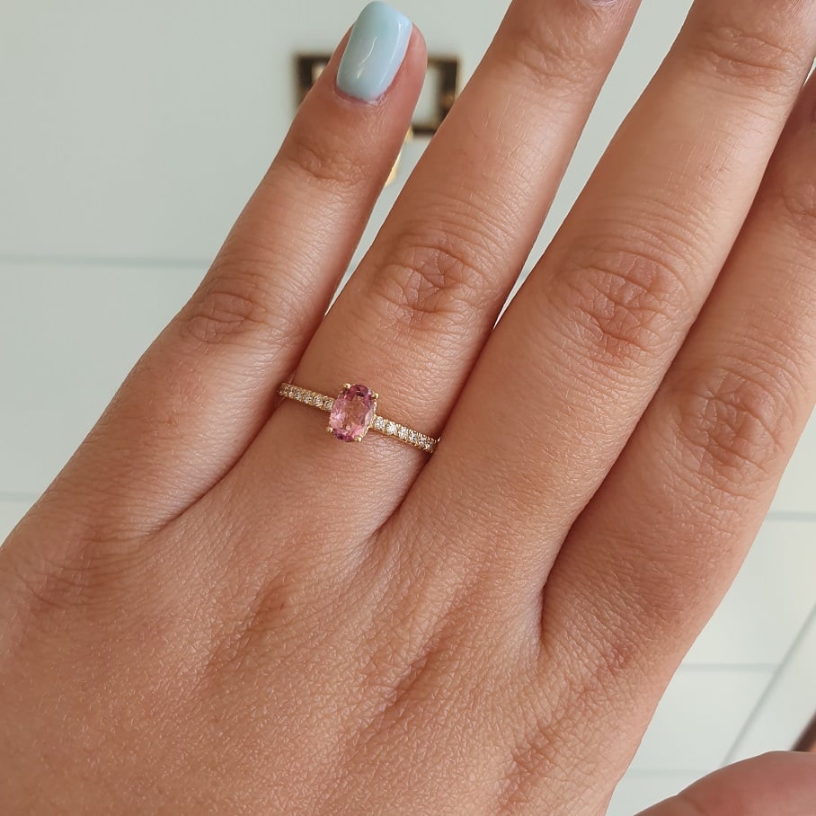 טבעת אירוסין זהב עם אבן חן טורמלין| טבעת יהלומים ואבן חן