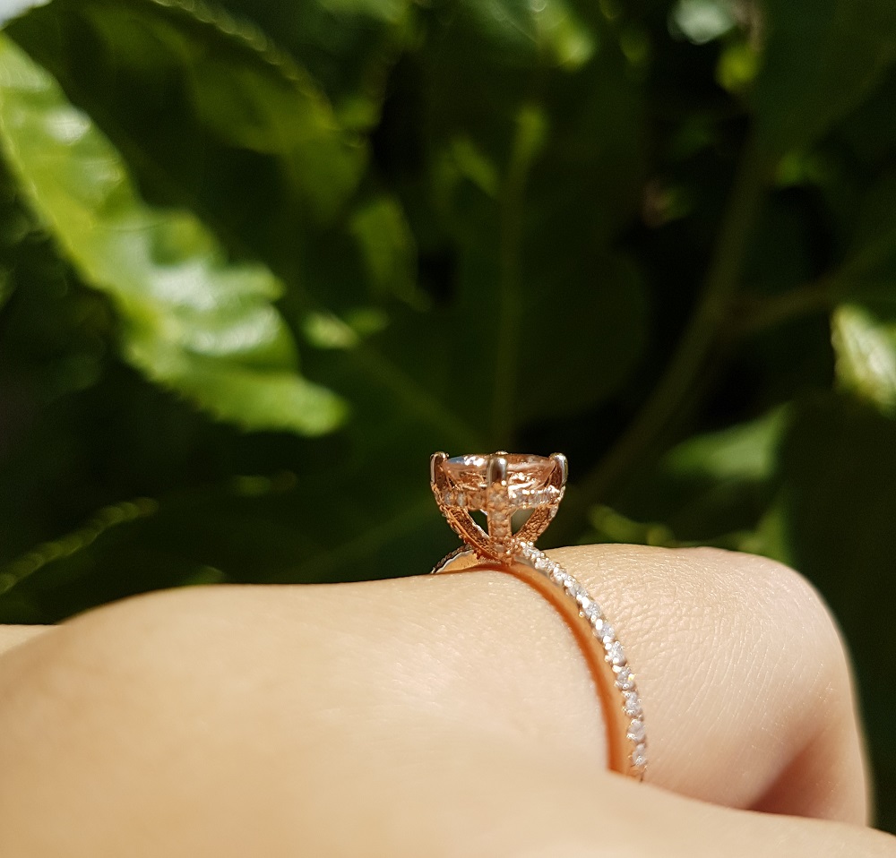 טבעת זהב 14K במרכז הטבעת משובצת אבן זרקון (לבחירה) , מסביב משובצים 50 יהלומים במשקל של 0.30 קראט יחד.