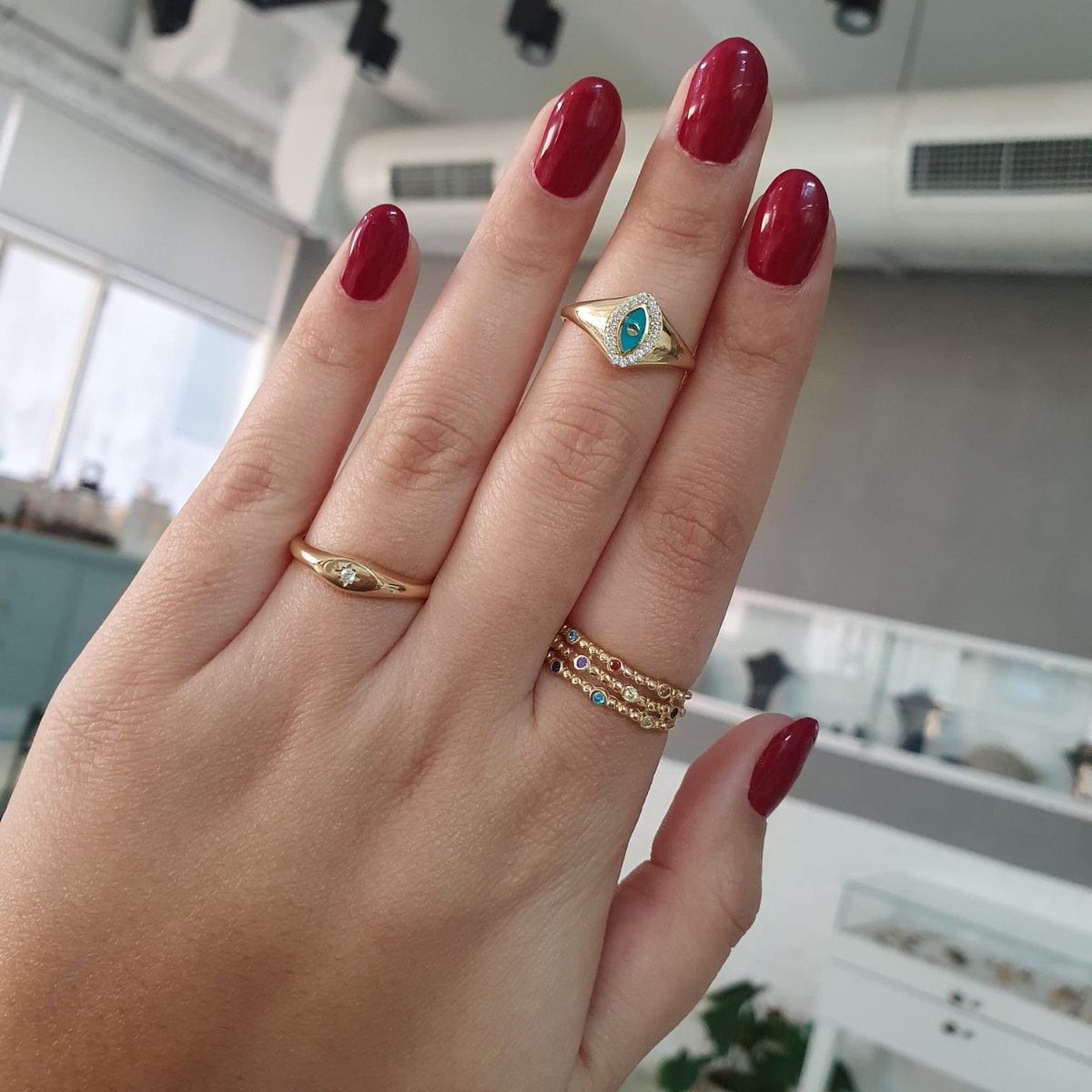 יפה במיוחד בשילוב בין שתיים שלוש טבעות או כטבעת זרת.