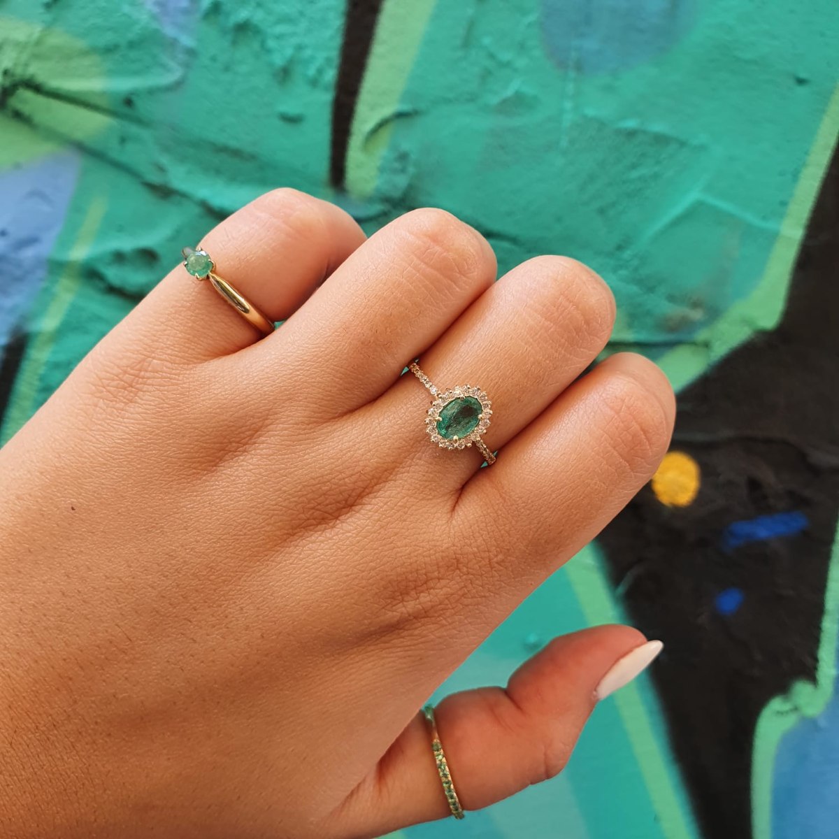 טבעת זהב משובצת אמרלד 0.25 קראט