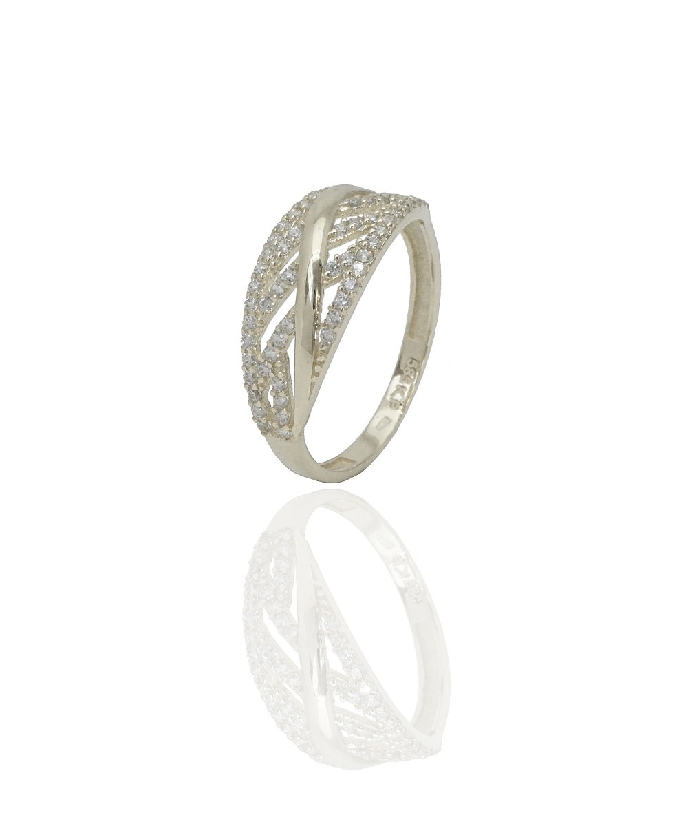 | תיאור טבעת זהב 14K. טבעת בשיבוץ שורות זרקונים נוצצים. מרשימה ומלאת נוכחות. |