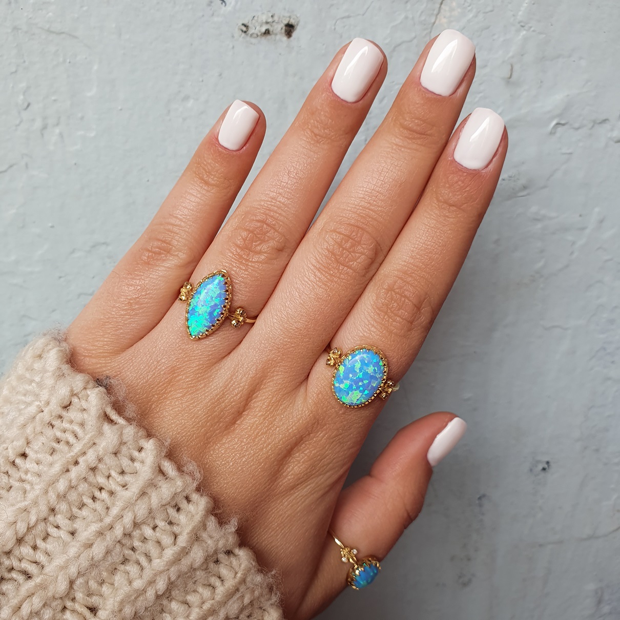 טבעת זהב עם אבן אופל כחול ויהלומים