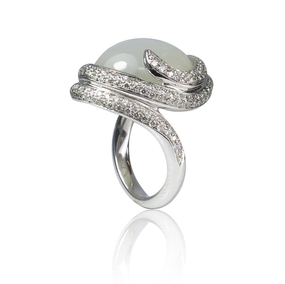 טבעת זהב 14K משובצת אבן מונסטון ויהלומים 1.30 קראט