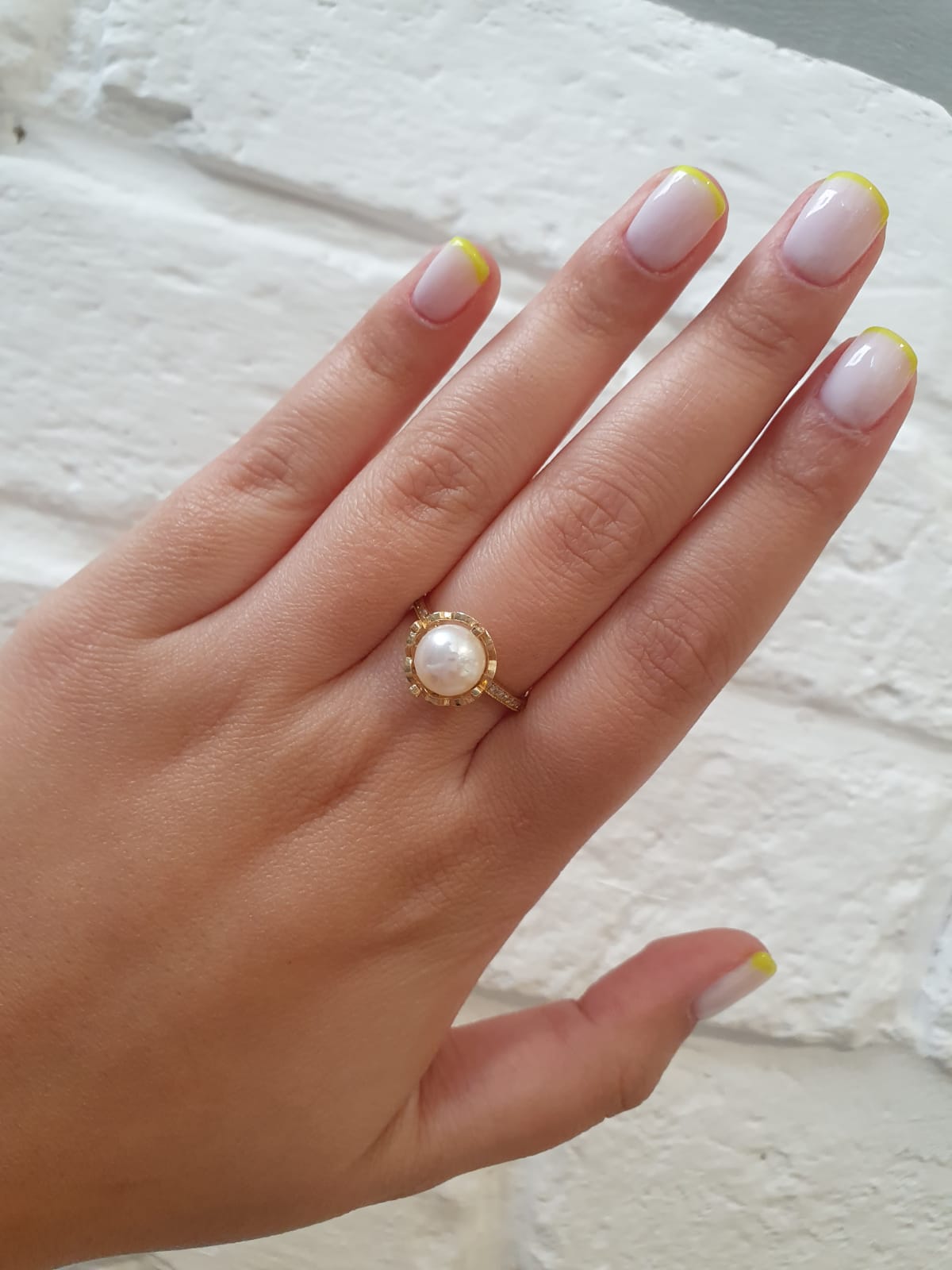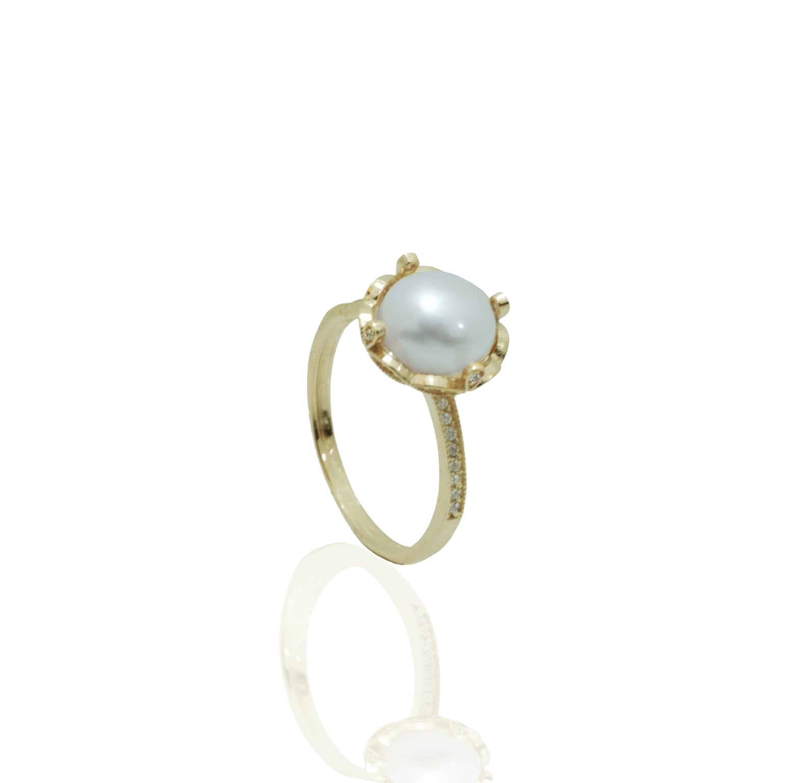 טבעת פנינה ויהלומים בסגנון וינטאג' בזהב