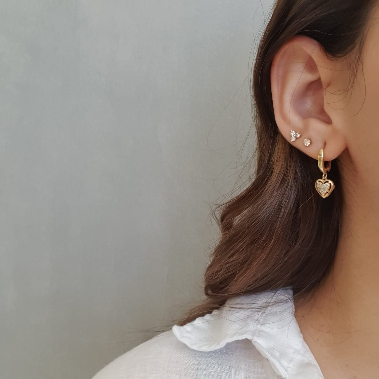 עגילי יהלומים לב מעוטרים נתלים מזהב