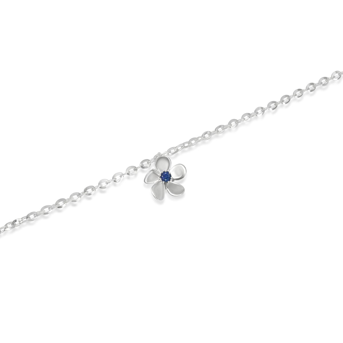 צמיד זהב לבן פרח עדין עם אבן ספיר