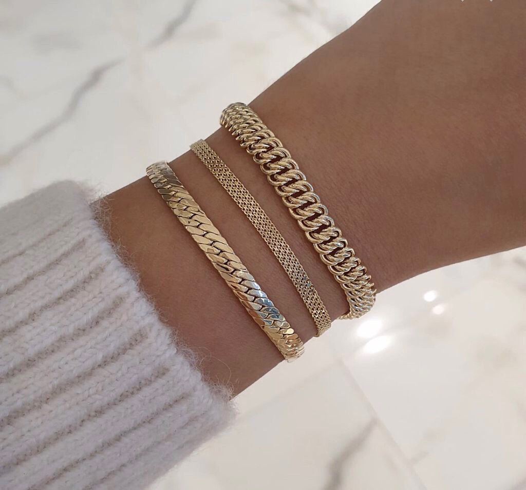 | תיאור צמיד זהב 14 קראט. צמיד סרוג, מש, צמיד קלוע מושלם! חובה בקופסת התכשיטים של כל אישה, תכשיט מהמם ומלא בסטייל, אלגנטי, משגע וישתלב עם אאוטפיט לעבודה, לאירוע וליום יום. |